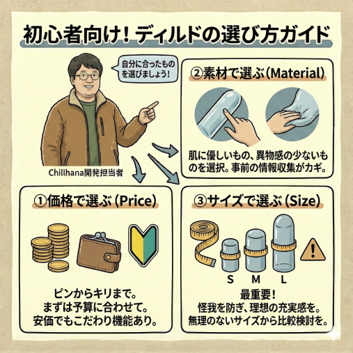 ディルドは先述した通り、挿入型のグッズになるので、選び方はかなり重要です。