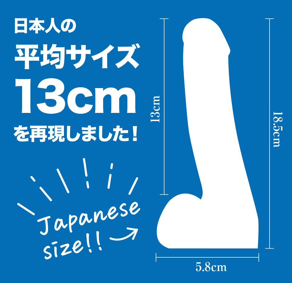サイズは日本人男性の平均とされる13cmを忠実に再現しています。無理のないサイズ感に加え、素材そのものに適度な柔軟性があるため、からだに優しくフィットしてくれます。オナニーライフが無理のなく、日本人に合ったものを追求している商品になります。さらに、底面には強力な吸盤を装備しています。壁や床にしっかり固定できるので、ハンズフリーで自由なセルフプレジャーをお楽しみいただけます。